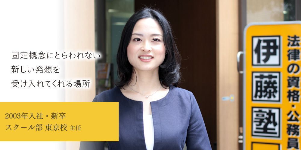 新卒として入社し早10 年以上経ちましたが、本当にあっという間でした。伊藤塾で同僚や諸先輩方と出会えたことも私にとっては人生においての宝です。働きやすい環境を作ってくださった社員の皆さんがいたおかげで、この日を迎えることができたと思っています。新しい環境で仕事をすることは、不安なことも多いと思いますが、わからないことは先輩社員が丁寧に教えてくれる環境が整っていますし、スキルアップのための研修も充実しています。そして固定概念にとらわれない新しい発想を受け入れてくれる場所です。私達と一緒に新しい伊藤塾を創り上げていきましょう。